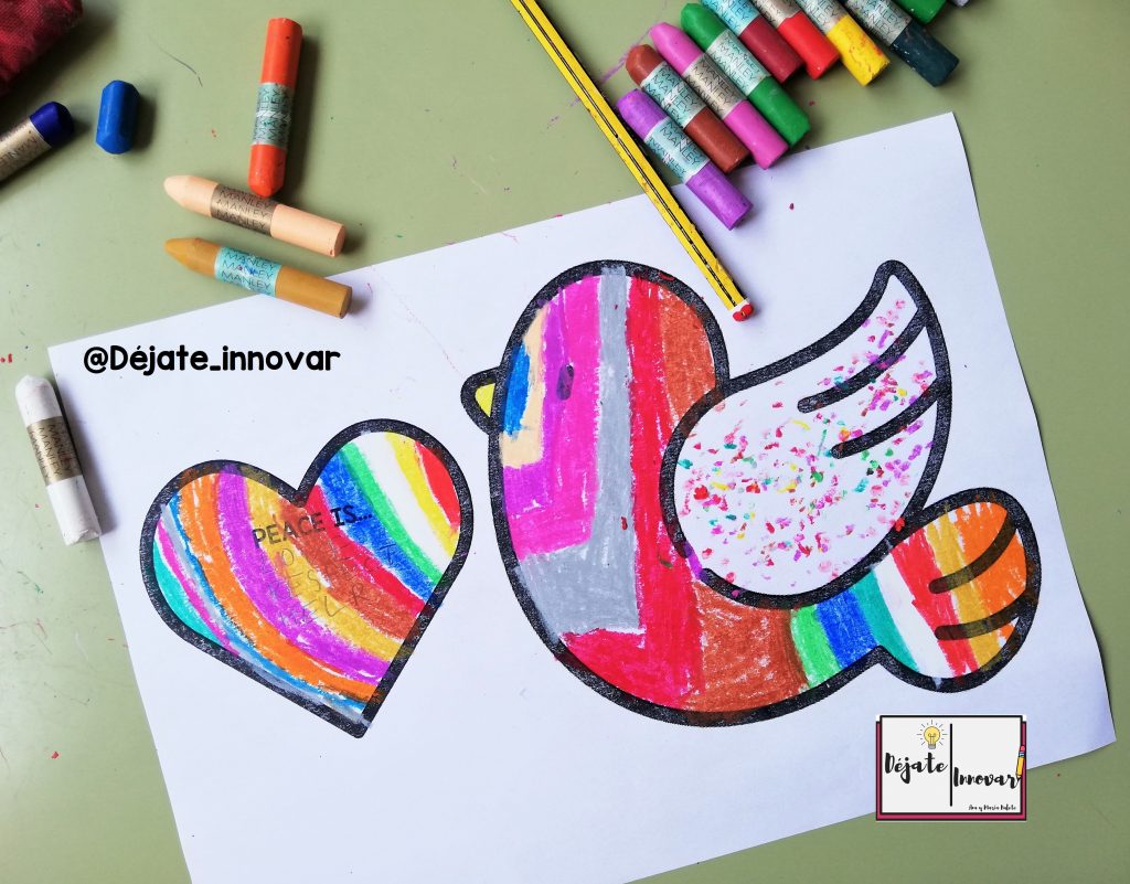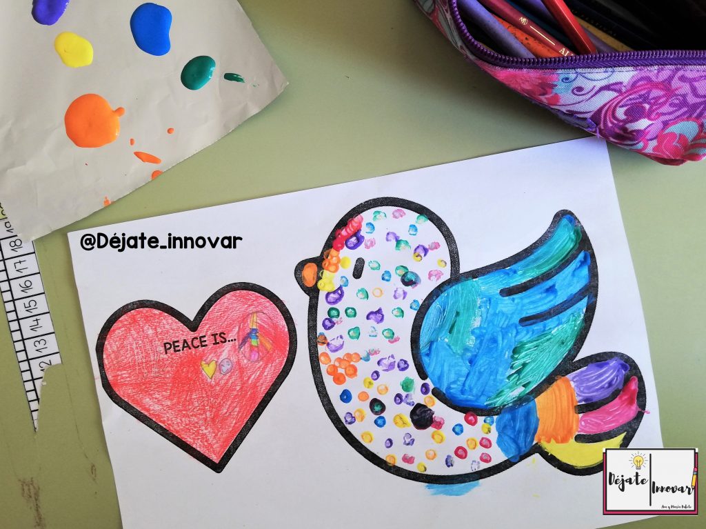 Os traemos una actividad muy sencilla para decorar las palomas de la paz que incluyen un pequeño corazón donde los alumnos escribirán un mensaje o deseo de paz.